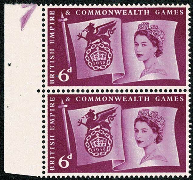1958 Games 6d. "thick IRE" variety. SG 568 var.