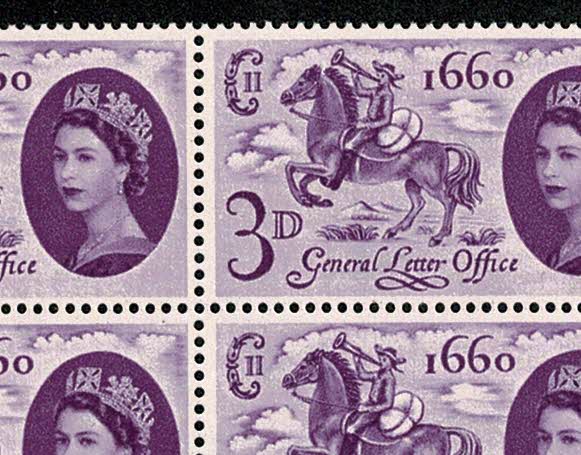 1960 General Letter Office 3d. Listed variety "broken mane" Cylinder block of eight. SG 619a