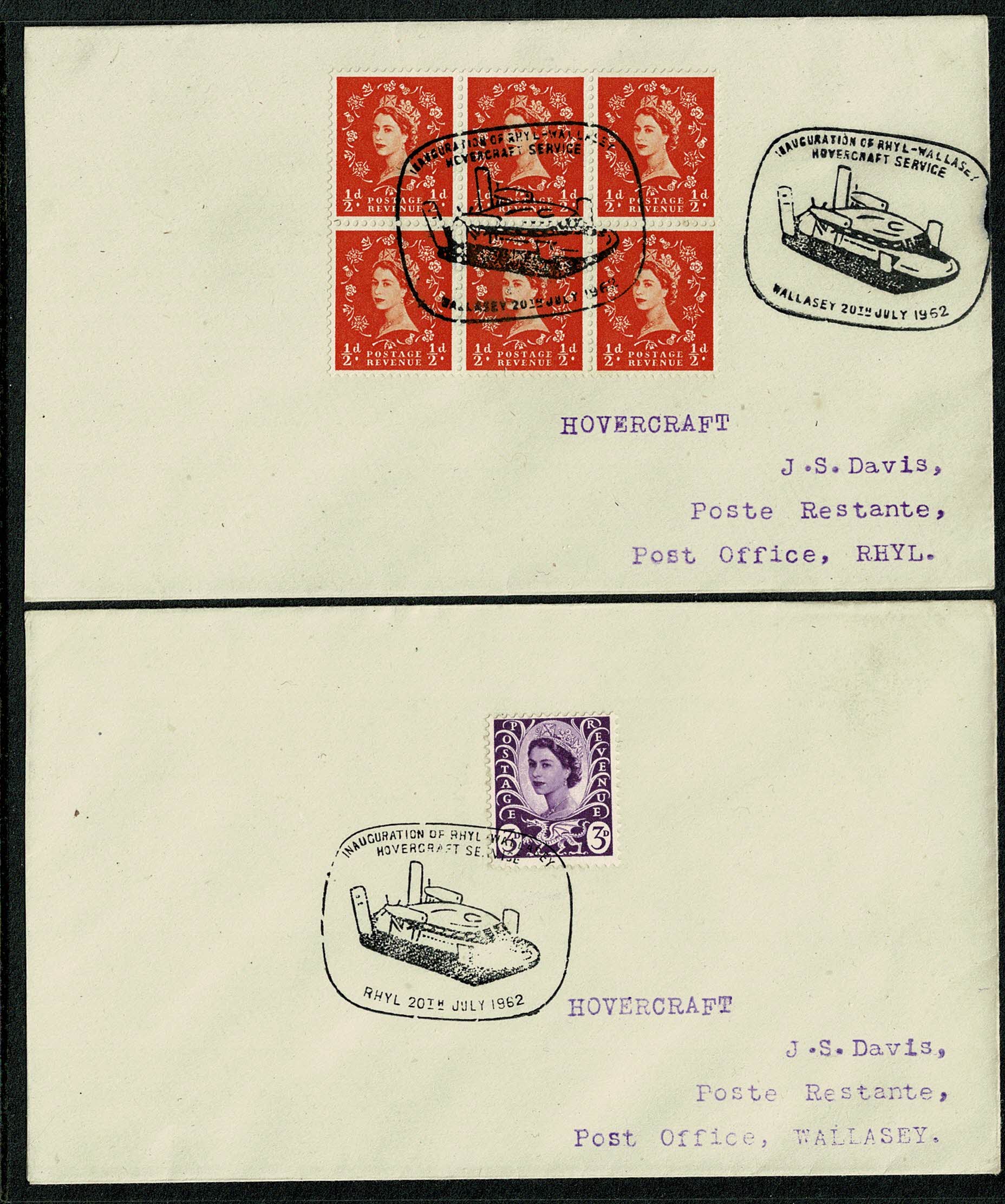 Mail was carried on the first trip each way on July 20th 1962. None was carried on later trips of 20th July or on any other days. Quantity was restricted to teo bags each way and mail from Rhyl was restricted to addresses in Wallasey, Liverpool, Birkenhead and The Wirral. Mail from Wallasey restricted to Rhyl Postmaster area.