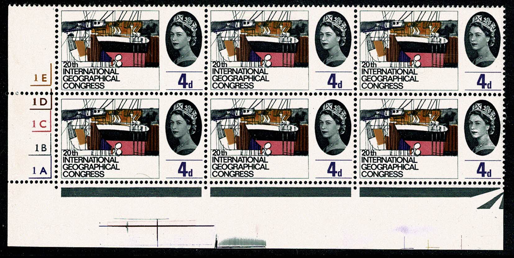 Cylinder block of six as illustrated, mounted on stamps 1 & 3 top row. Listed constant variety "scarred neck" R 20/3