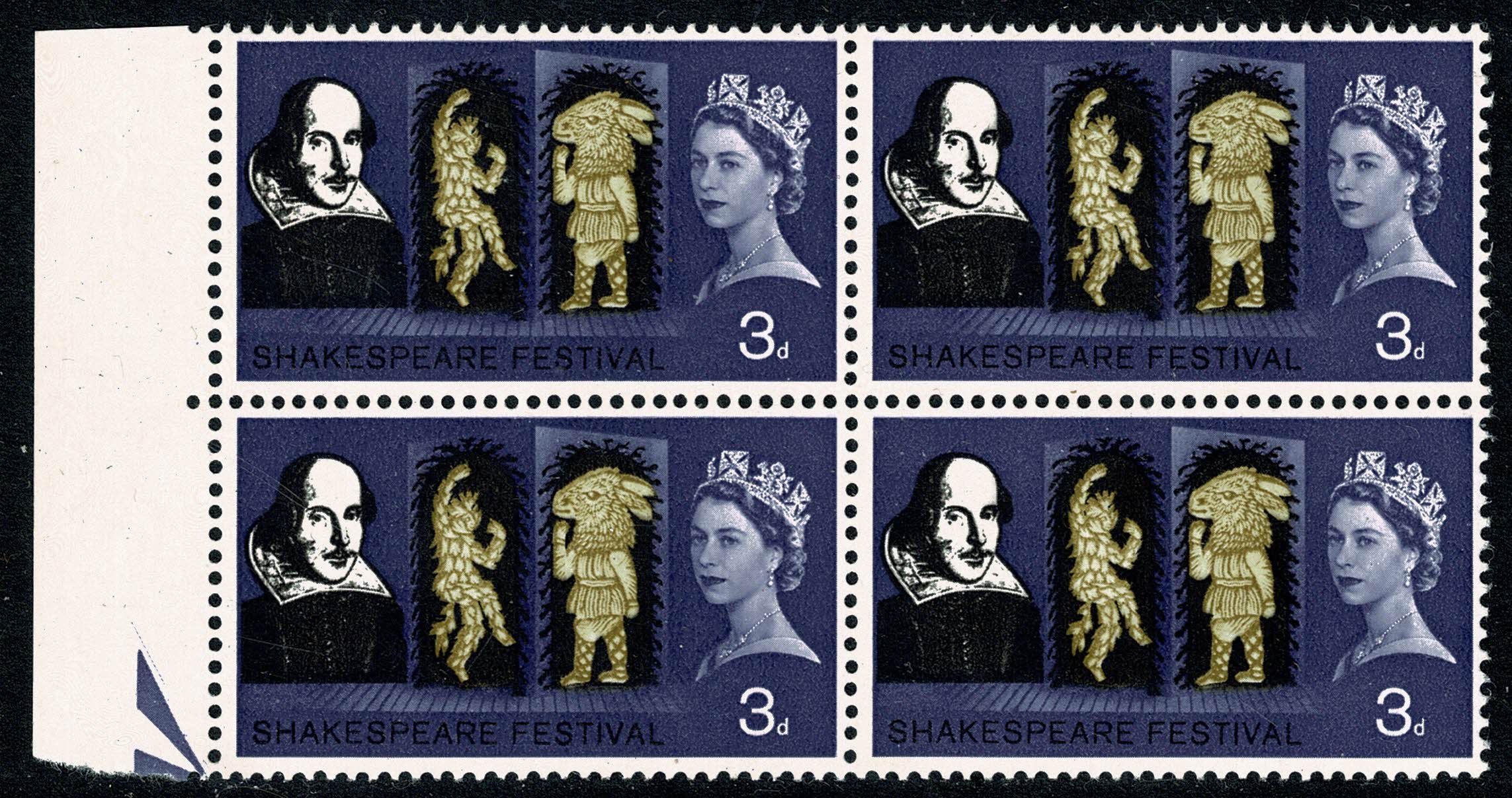 1964 Shakespeare 3d (ord). Minor constant flaw "extra pearl". SG 646 var