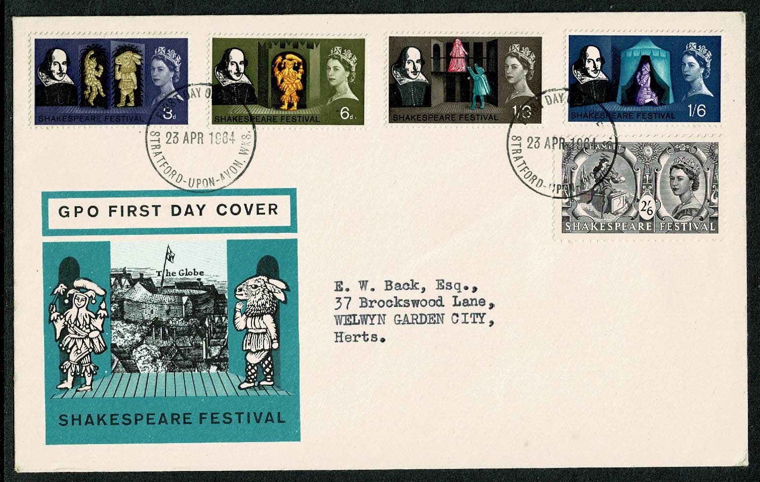 1964 Shakespeare (ord). Set of 5 values "Stratford-upon-Avon" FDI
