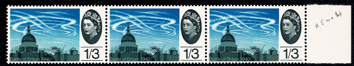 1965 Battle of Britain 1/3 (ord). Minor constant variety "dark line between B and r of Britain"