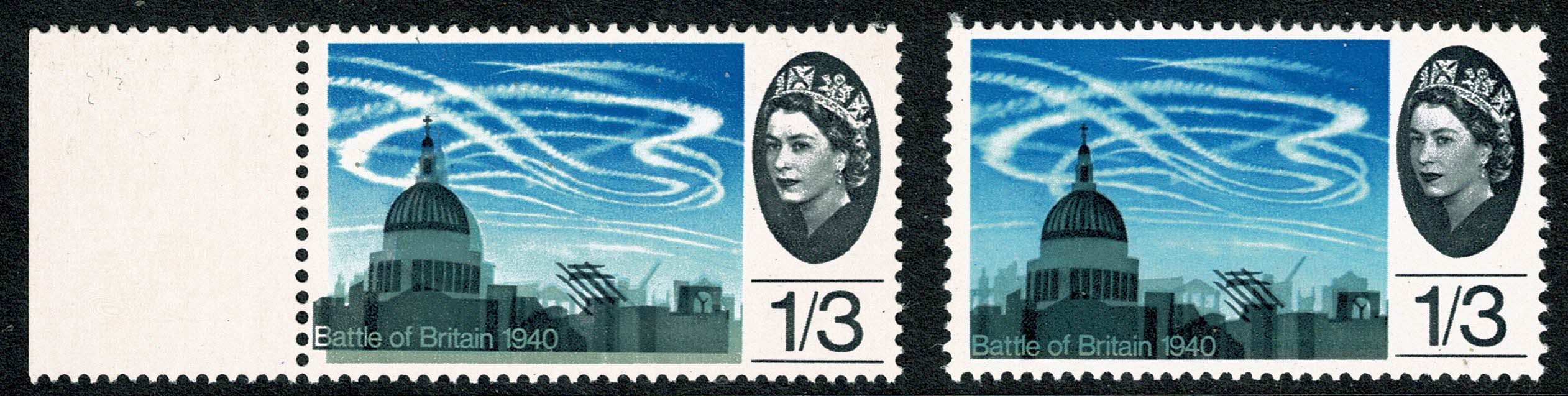 1965 Battle of Britain 1/3 (ord). SHIFT OF DEEP GREY to left. SG 678 var