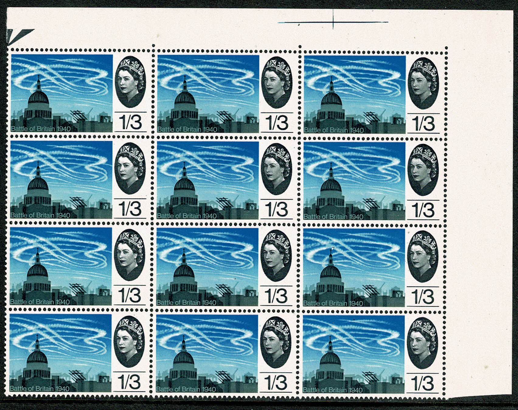 1965 Battle of Britain (ord).1/3 "scratch below 1940" listed minor constant variety. SG 678 var