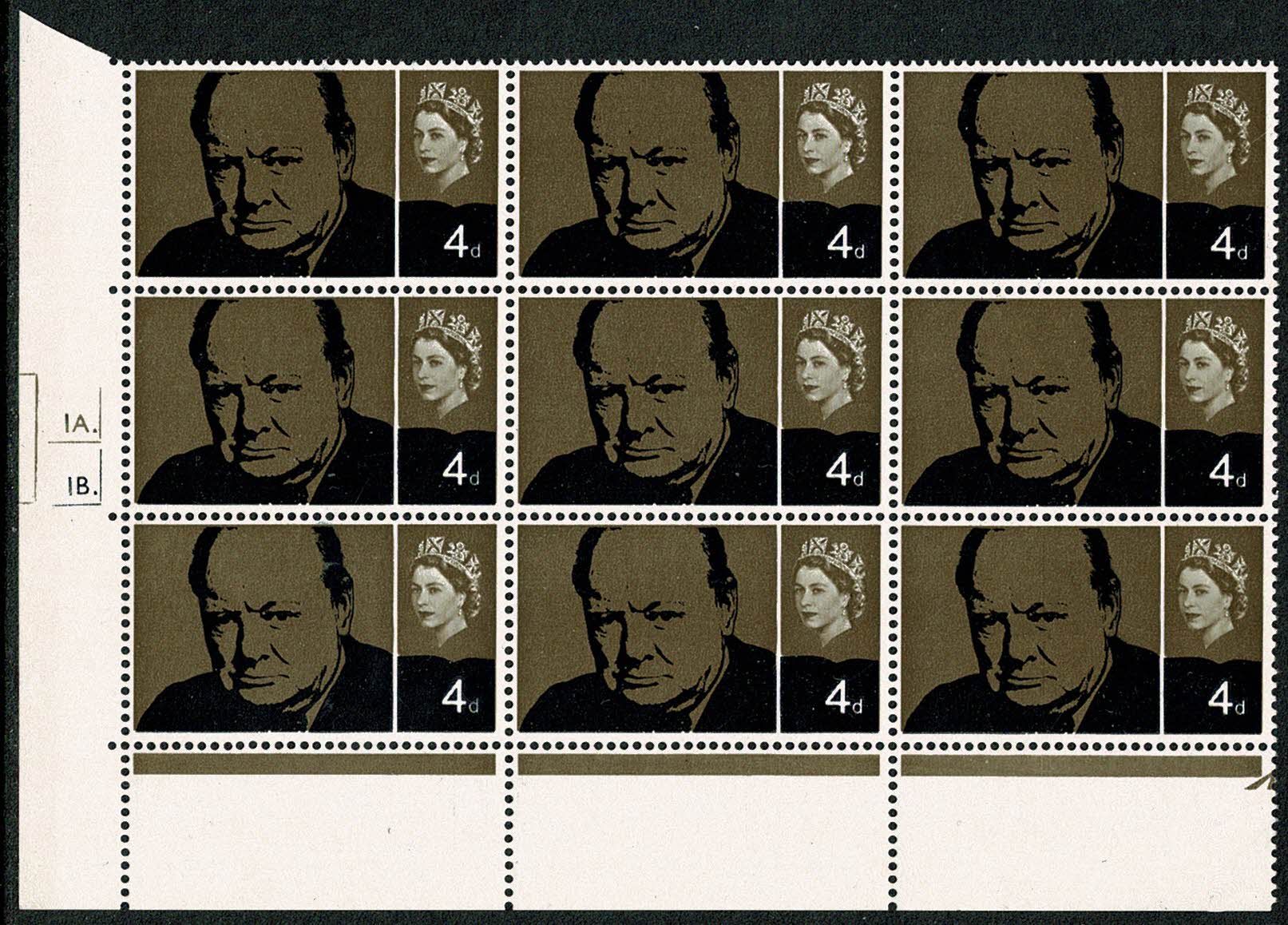 1965 Churchill 4d (ord). Listed variety "vertical scratch". Cyl. block. SG Spec. W56b