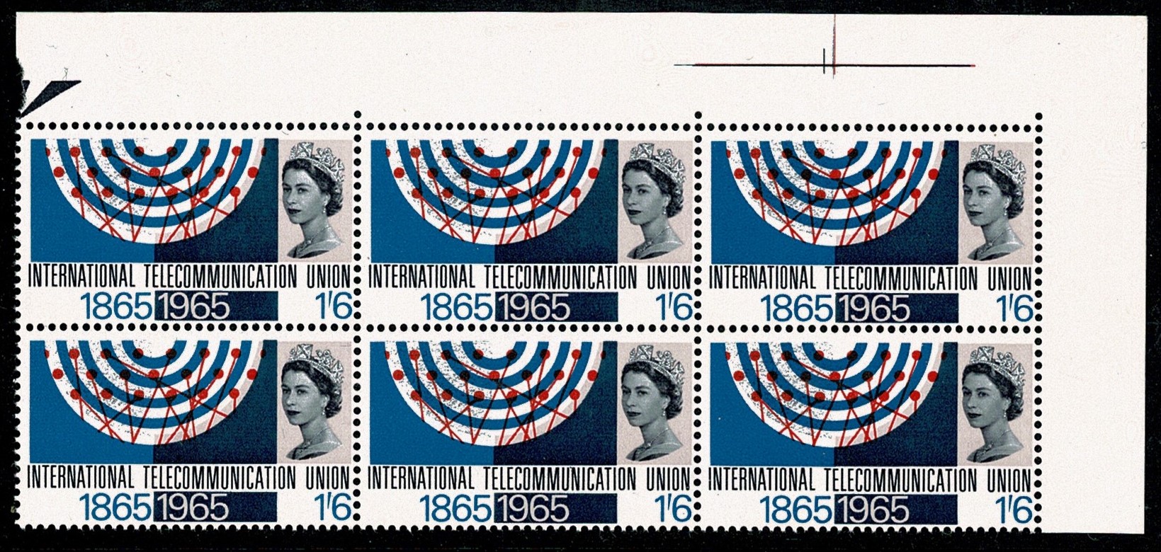 1965 ITU 1/6 (ord). Constant variety "retouched arm" SG Spec. W80d