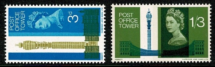 1965 Post Office Tower (phos). UM Set of 2 values SG 679p-680p