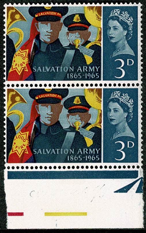 1965 Salvation Army 3d (phos). Listed variety "retouch to V". SG Spec. WP61b