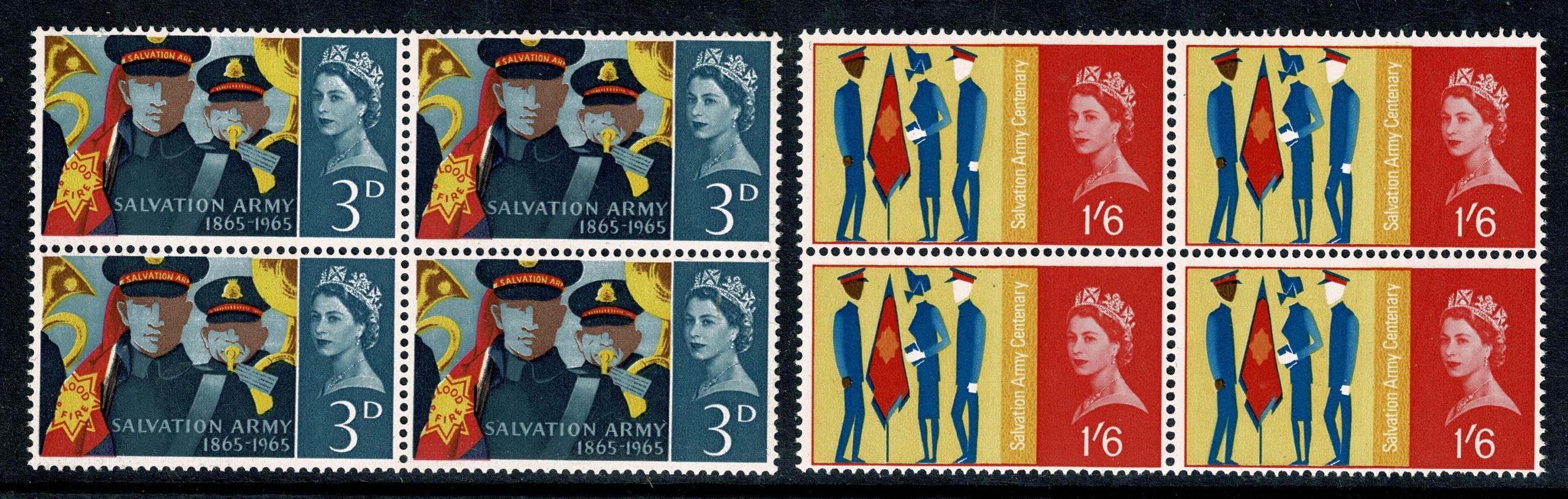 Unmounted mint blocks of four. 1965 Salvation Army (ord). Set of 2 values.