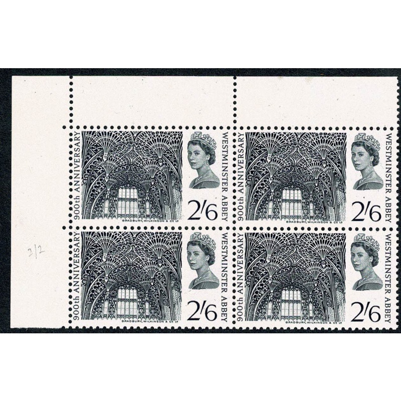 1966 Abbey 2/6. Listed variety "broken horizontal line in top margin" SG 688 var.