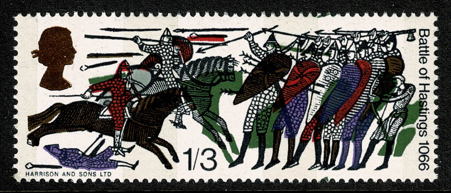 1966 Battle of Hastings 1/3 (phos). SHIFT OF BRONZE GREEN. SG 712p var.