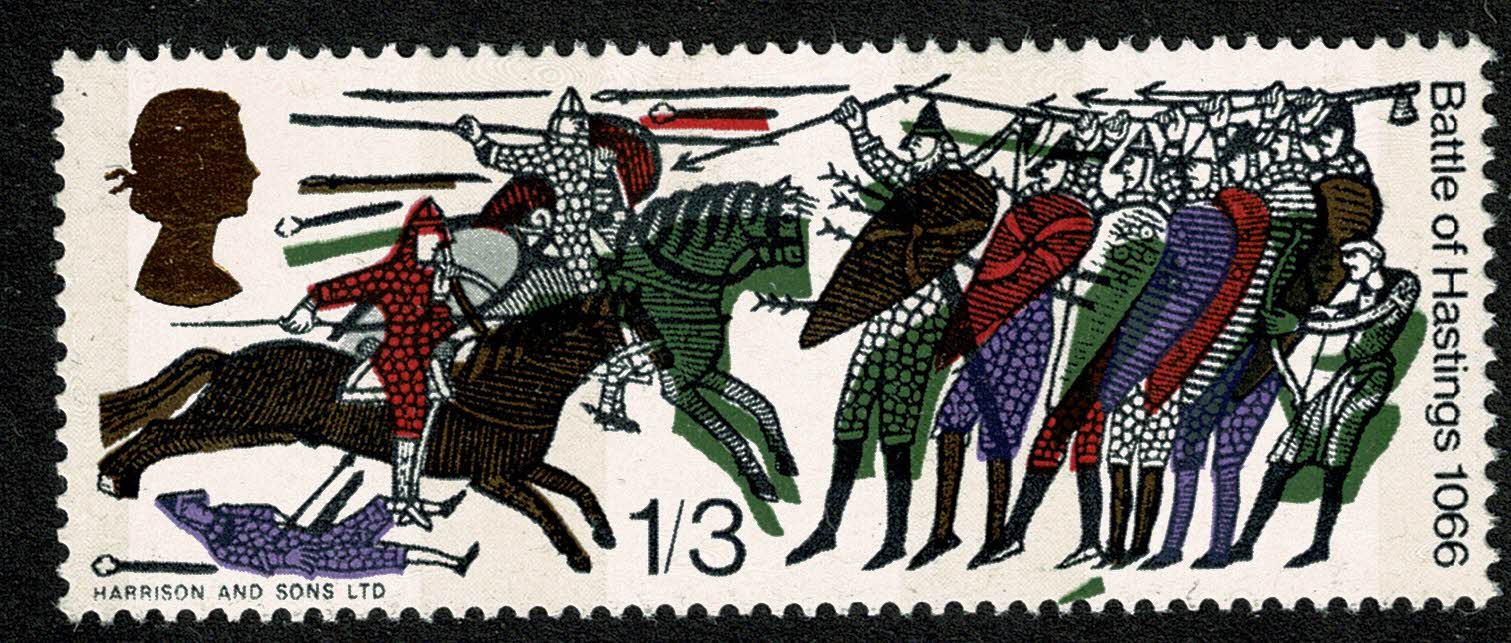 1966 Battle of Hastings 1/3 (phos). SHIFT OF BRONZE GREEN. SG 712p var.