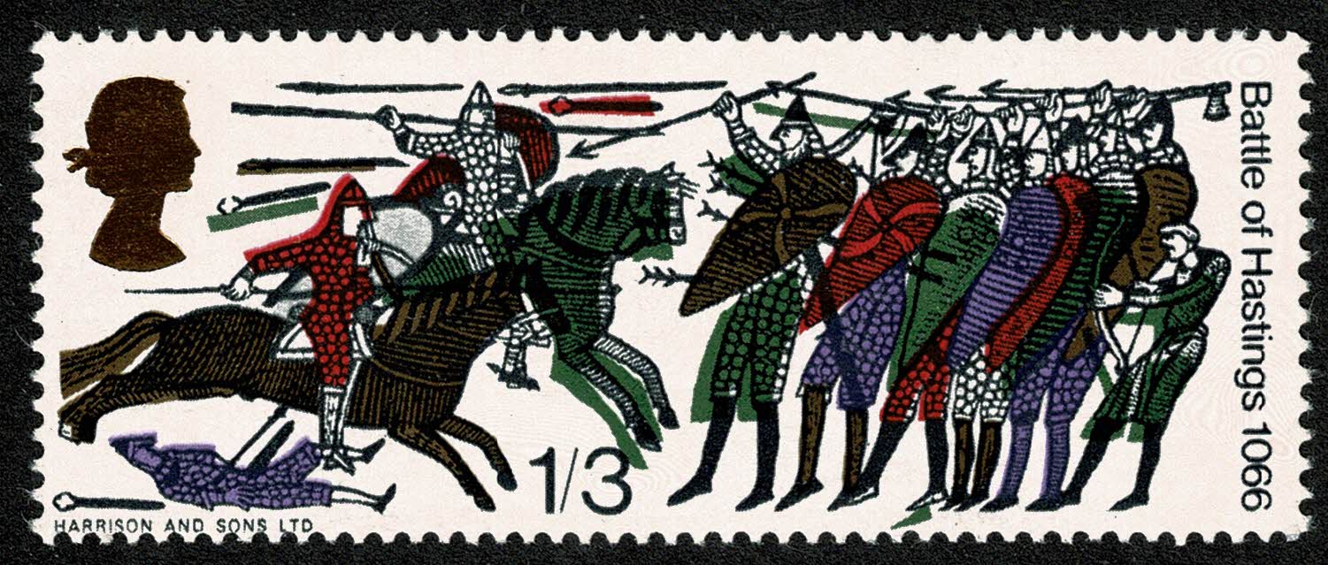 1966 Battle of Hastings 1/3 (phos). SHIFT OF BRONZE GREEN. SG 712p var.