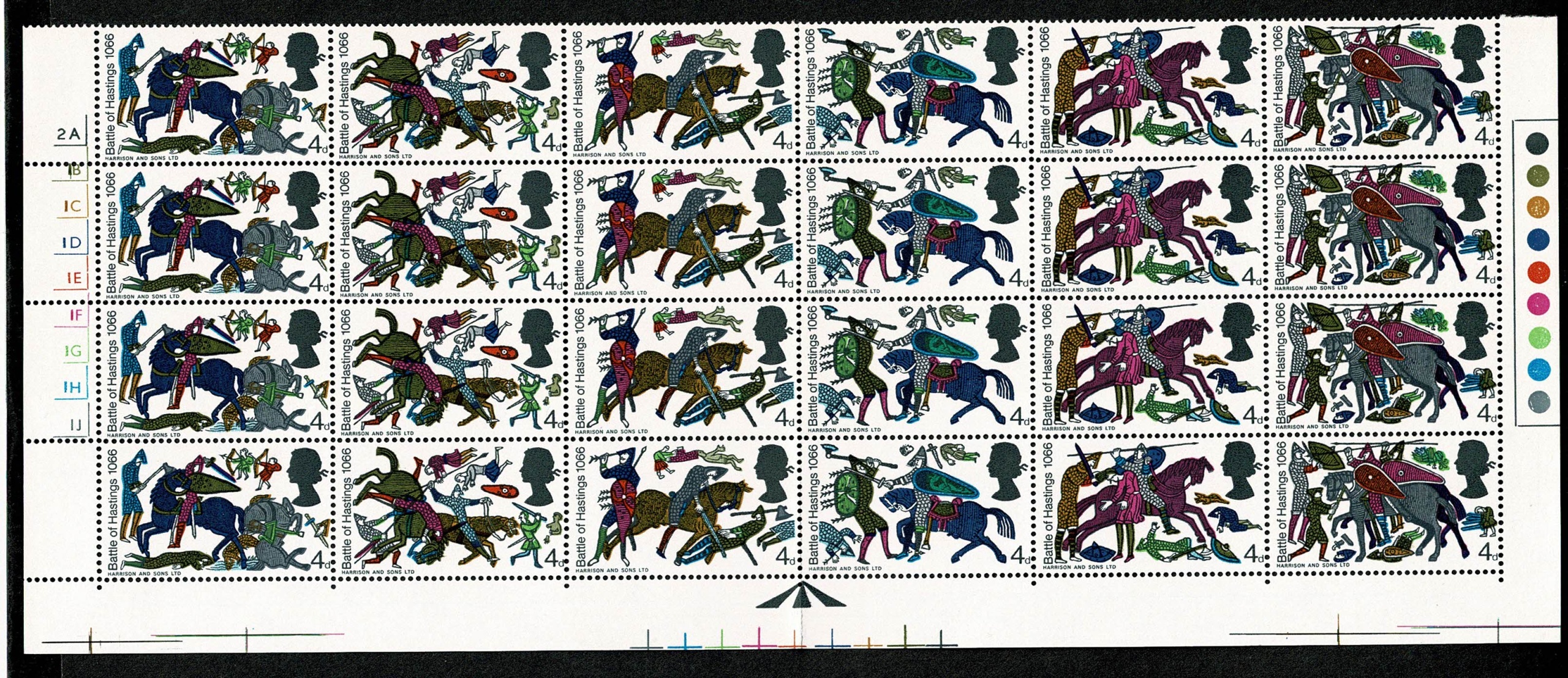 1966 Battle of Hastings 4d (ord). Cylinder 2A 1B 1C 1D 1E 1F 1G 1H 1J no dot block of 24. SG 705-710