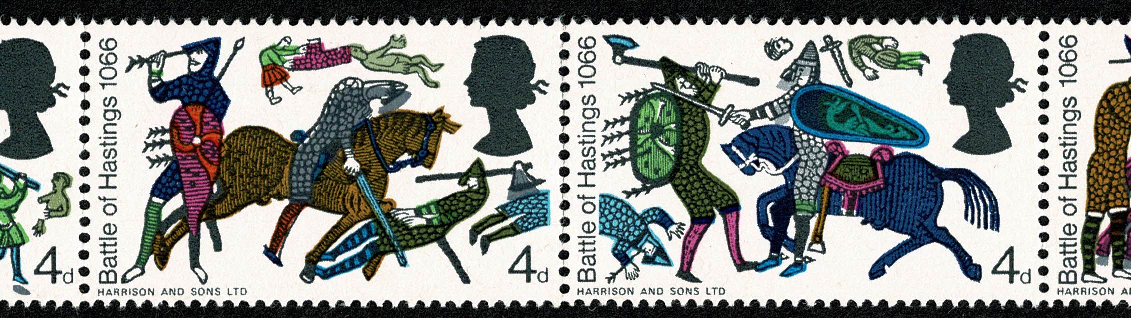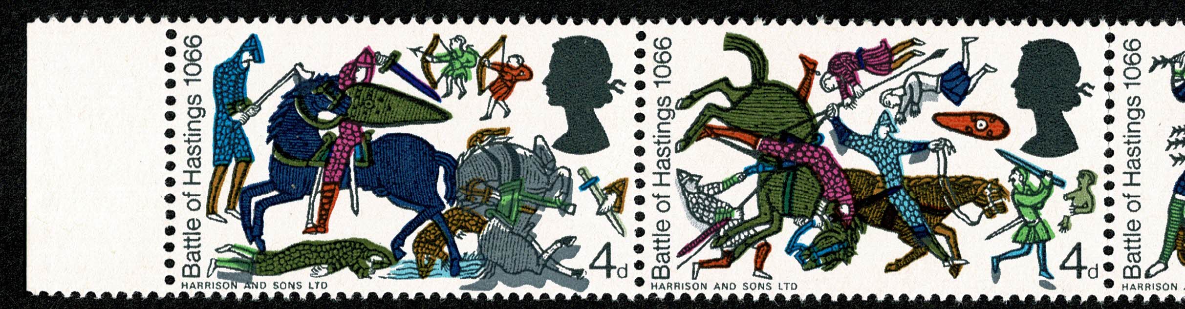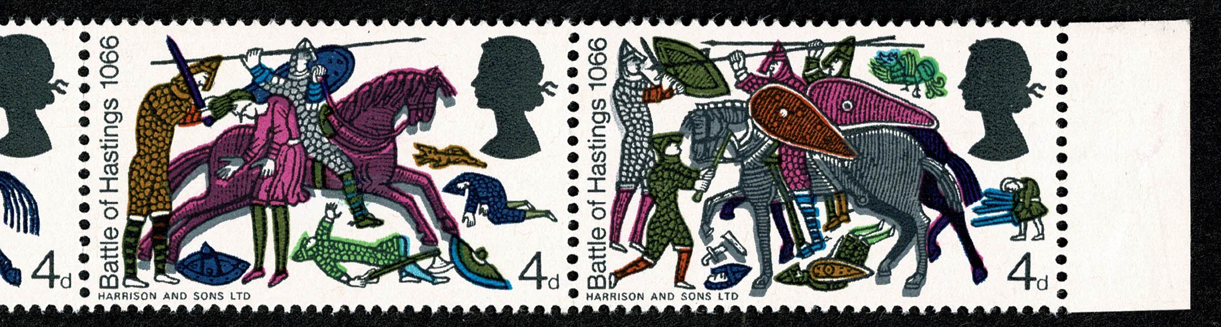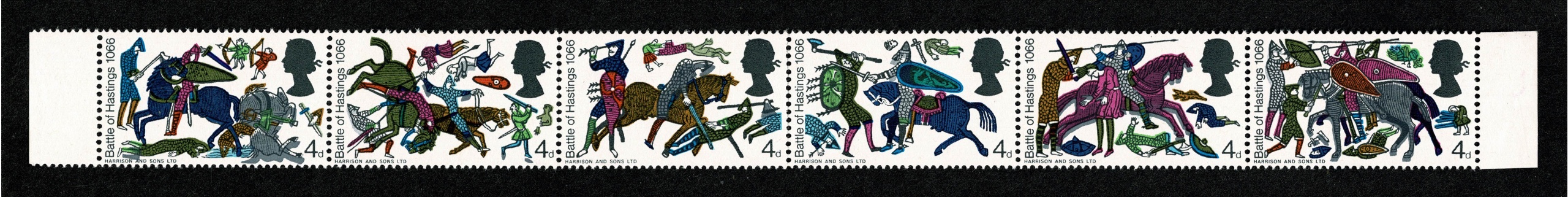1966 Battle of Hastings (ord). 4d s/t strip SHIFT OF GREY. SG 705-712 var
