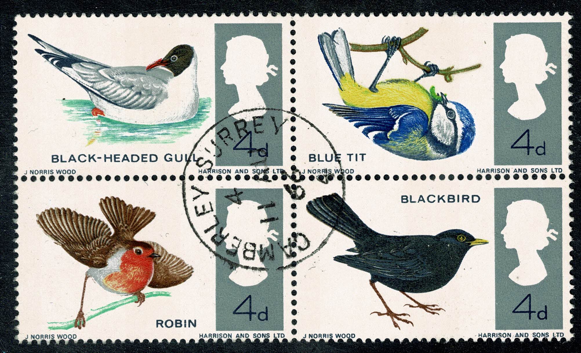 1966 Birds 4d (phos). Se-tenant block. Superb Used. SG 696p/699p
