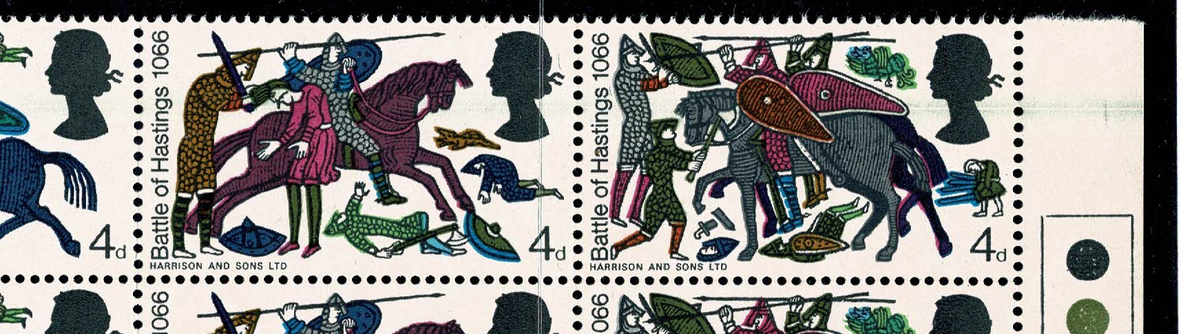 1966 Hastings 4d (ord). BLADE FLAW. Cylinder 1A1B1C1D1E1F1G1H1J block of 24.