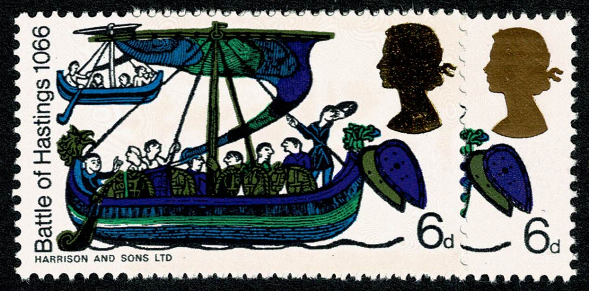 1966 Hastings 6d (ord). Pair of stamps with "bronze" and "yellow" Queen's heads