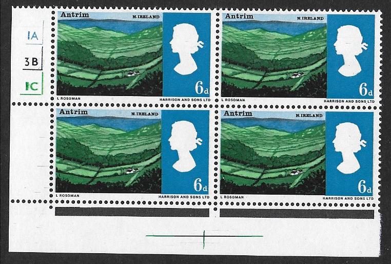 1966 Landscapes 6d (ord). Cylinder 1A 3B 1C no dot block of four.