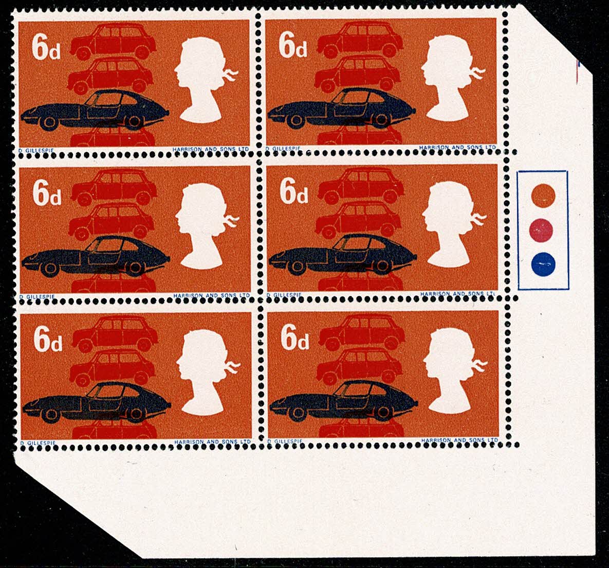 1966 Technology 4d (ord). Listed constant variety "broken D" Traffic light block. SG 702pc.