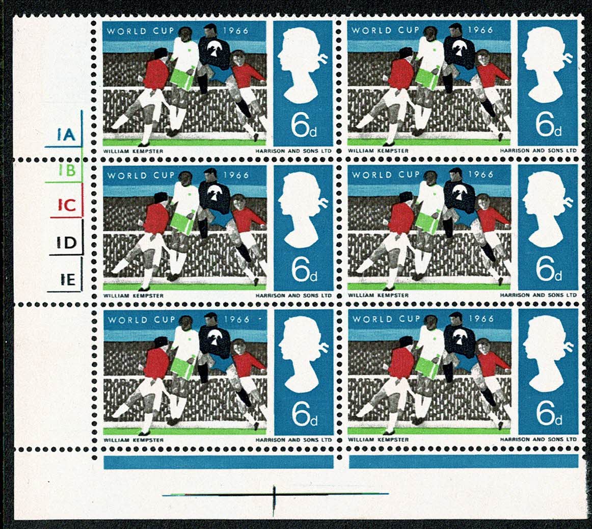 1966 World Cup 6d (ord). Cyl. 1A 1B 1C 1D 1E no dot Perf Type F (P/E).