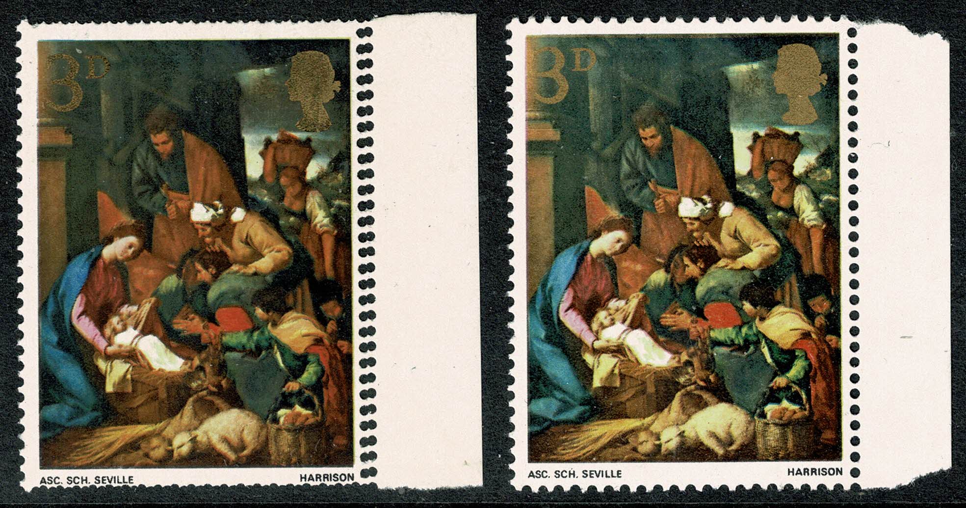 1967 Christmas 3d. DOUBLE PERFORATION error. SG 756 var.