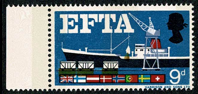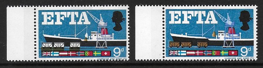 1967 EFTA 9d (phos). SHIFT OF BROWN.