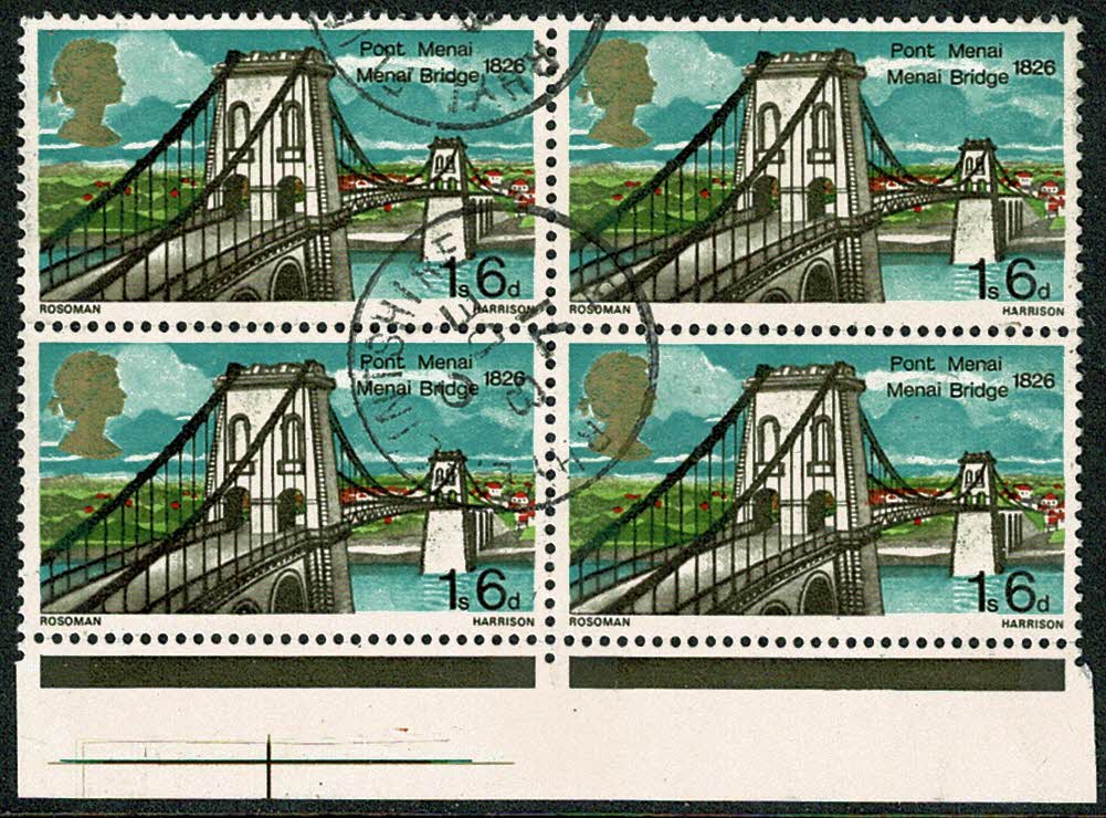 1968 Bridges 1/6. "green spot above arch" minor constant variety. Fine used block of four.