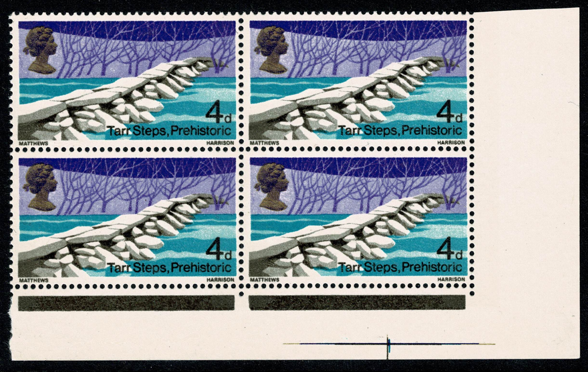 1968 Bridges 4d. PRINTED ON GUMMED SIDE. Block of four SG 763a