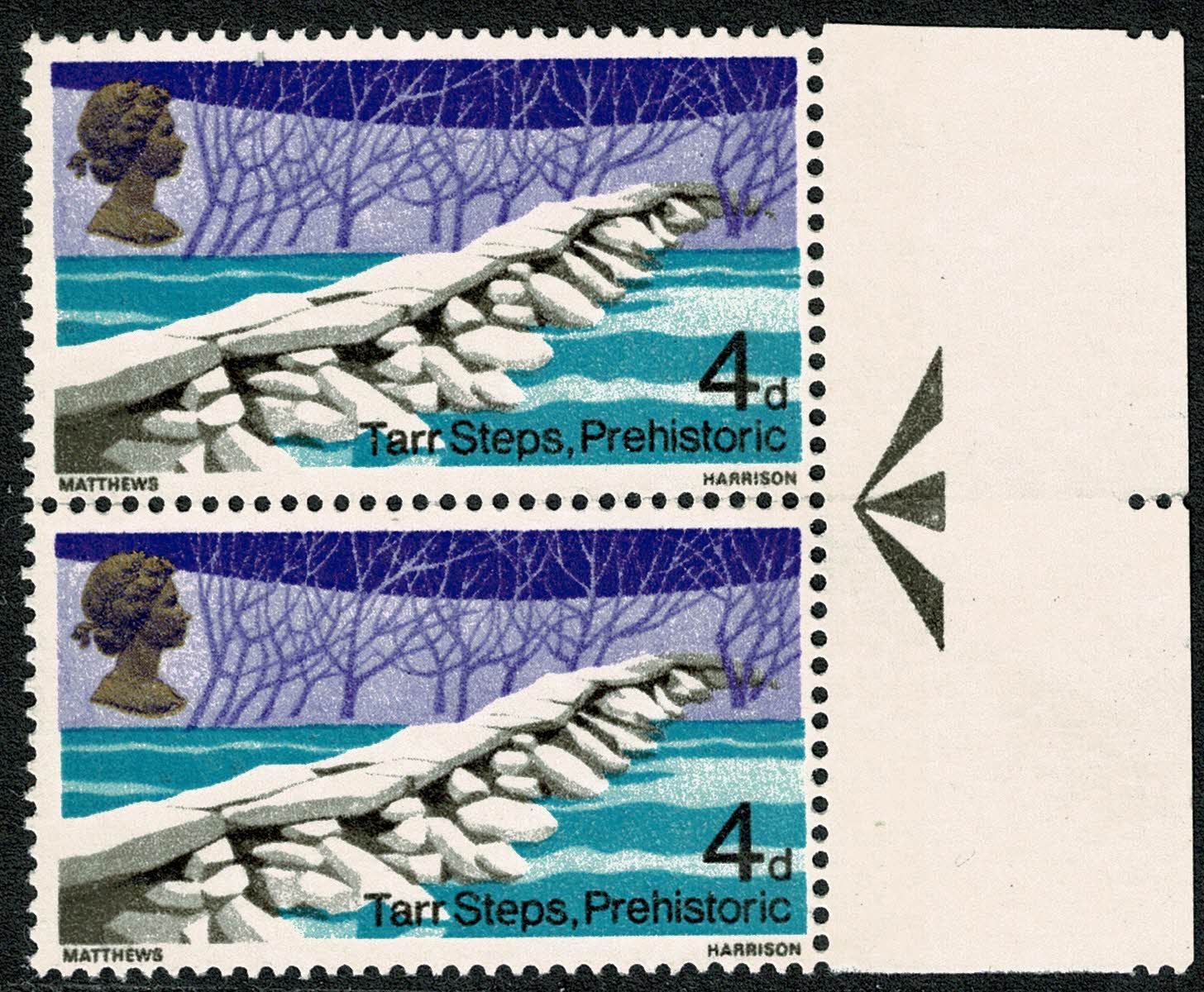 Unmounted mint positional pair PRINTED ON GUMMED SIDE. Contains listed constant variety " no curve at left of central slab" SG 763d R10/6