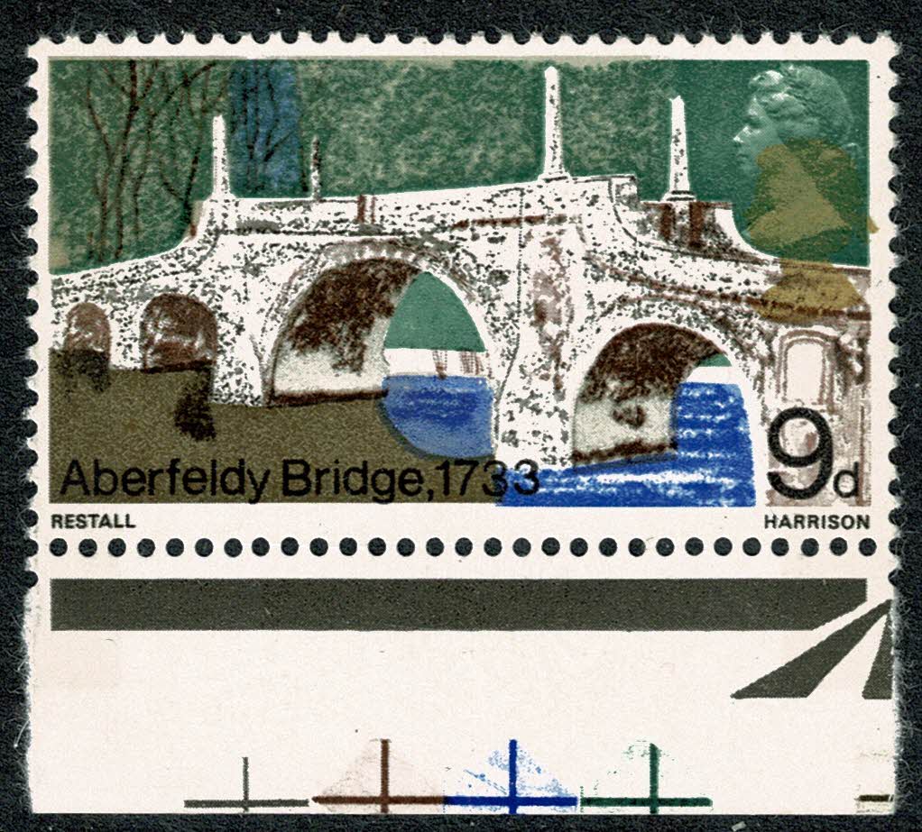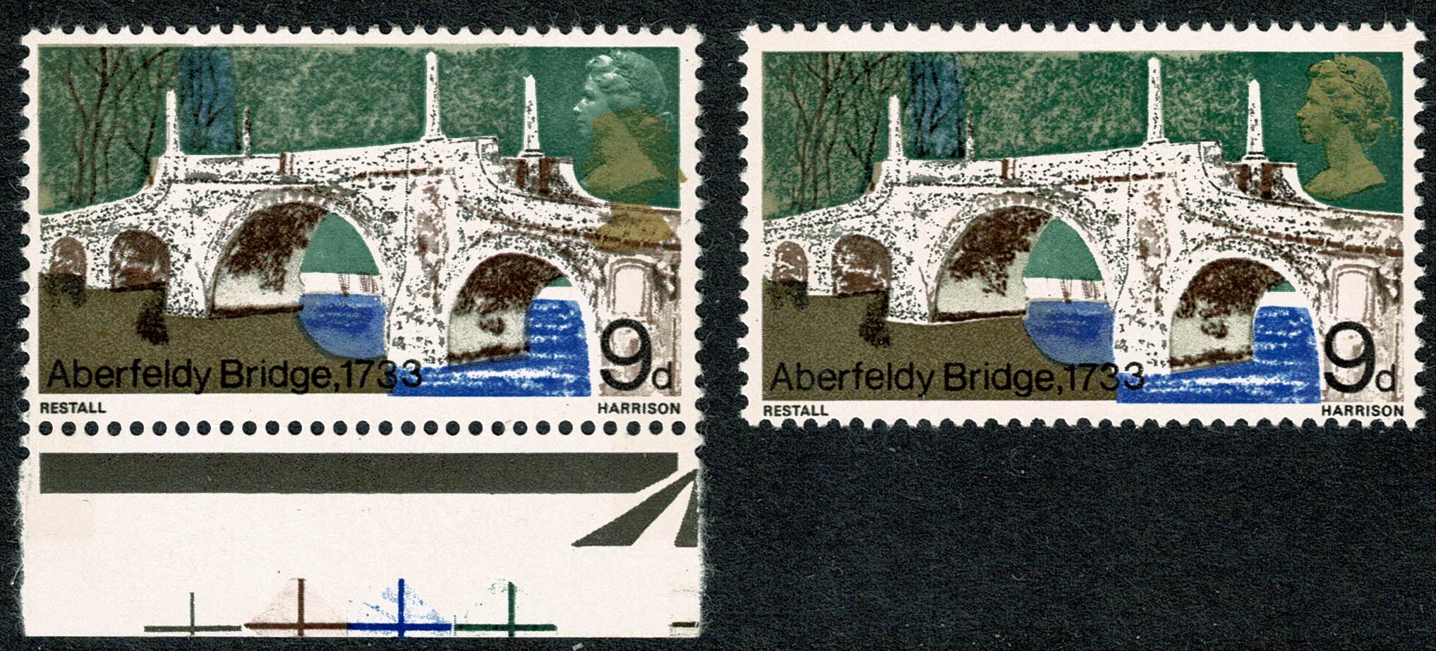 1968 Bridges 9d . DOWNWARD SHIFT OF GOLD. SG 764 var.
