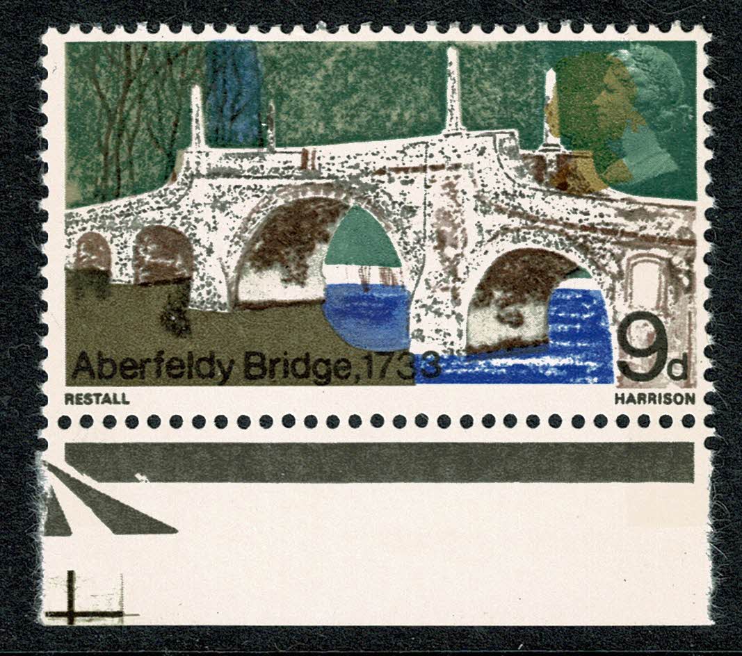 1968 Bridges 9d. SHIFT OF GOLD. SG 764 var.