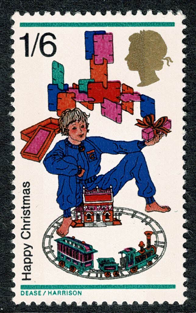 1968 Christmas 1/6. SHIFT OF EMBOSSING. SG 777 var