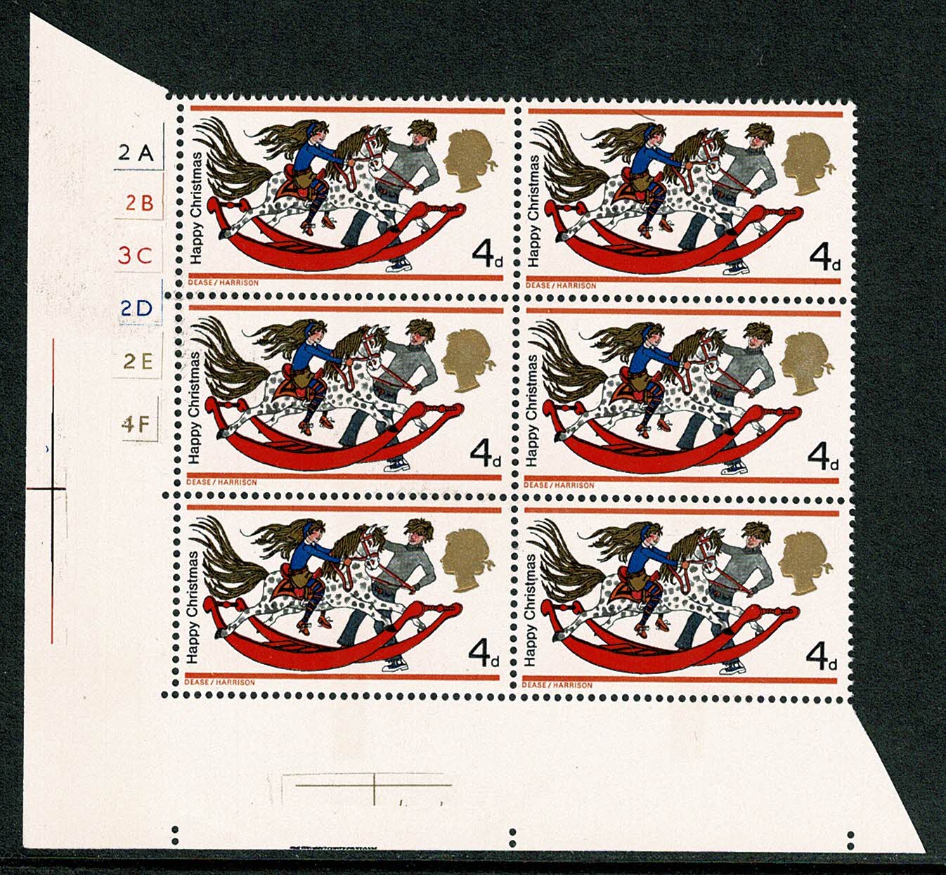 1968 Christmas 4d Cyl. 2A 2B 3C 2D 2E 4F no dot block of six