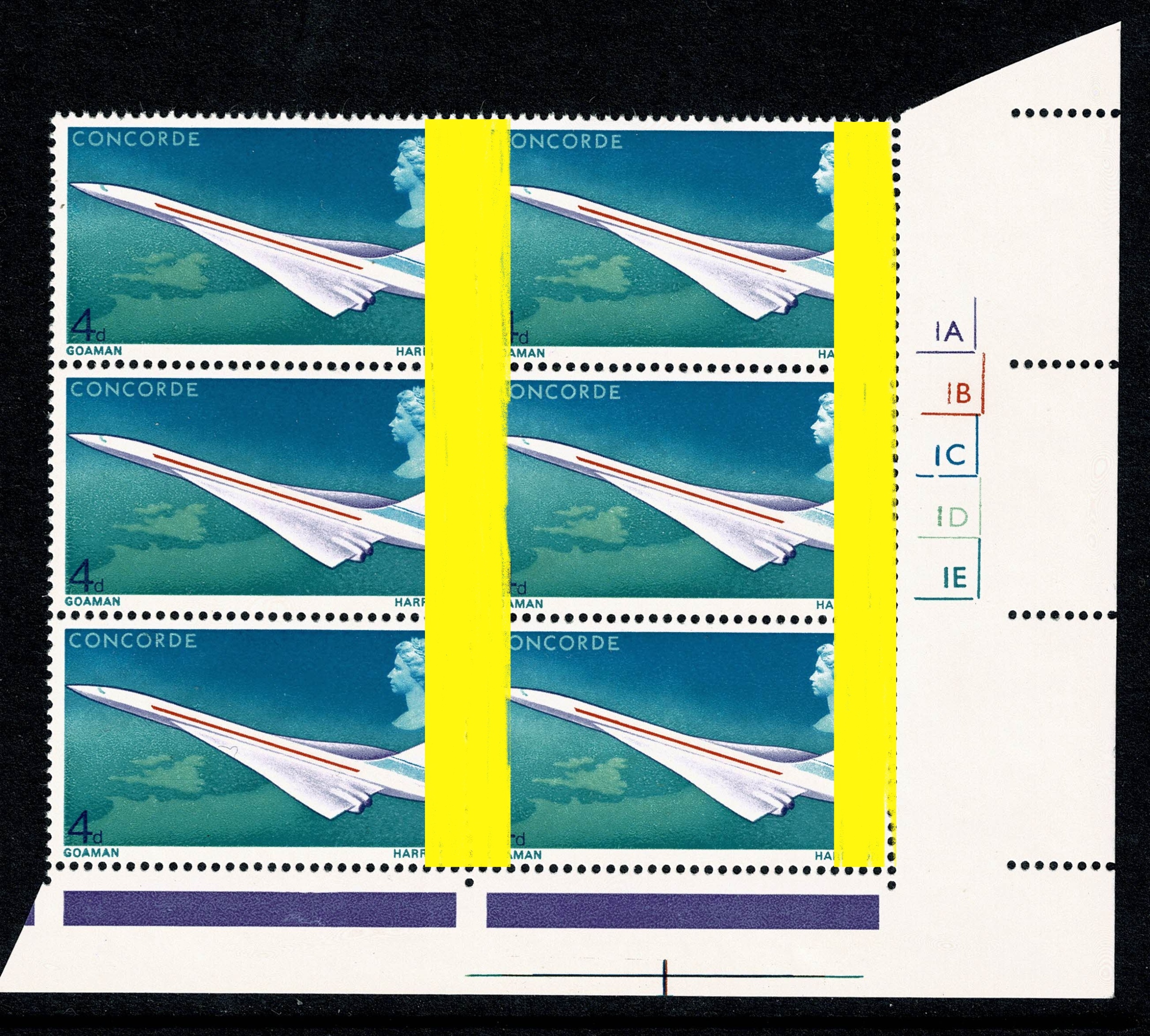 Unmounted mint cylinder block of six with the 3 left hand stamps LEFT BAND OMITTED. No reaction under UV.