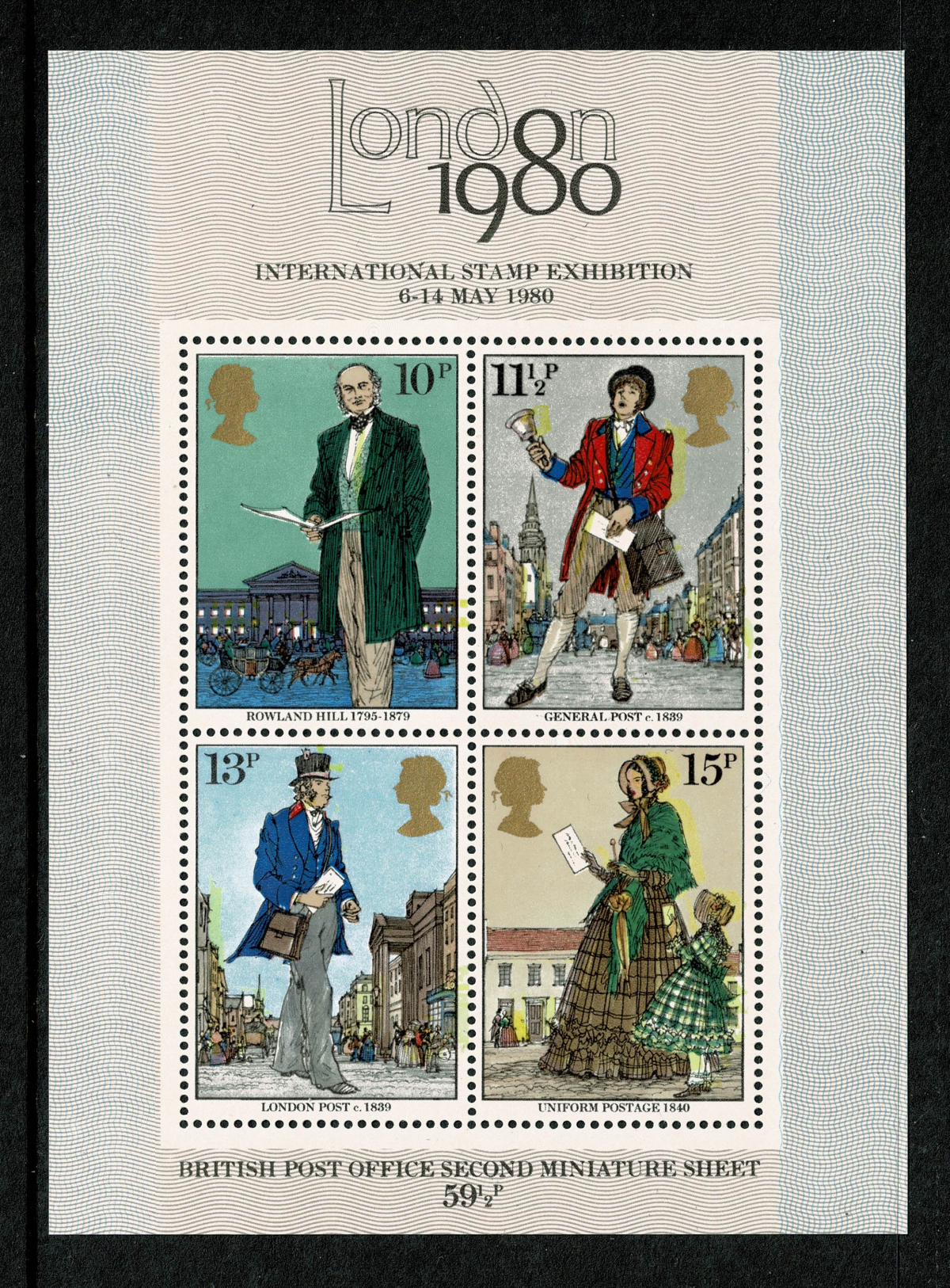 Unmounted mint miniature sheet with qute marked and visual shift of yellow to right. Affects design of all stamps, on 10p value results in windows appearing white marked affects on 11½p and 15p values. See close up images of individual stamps