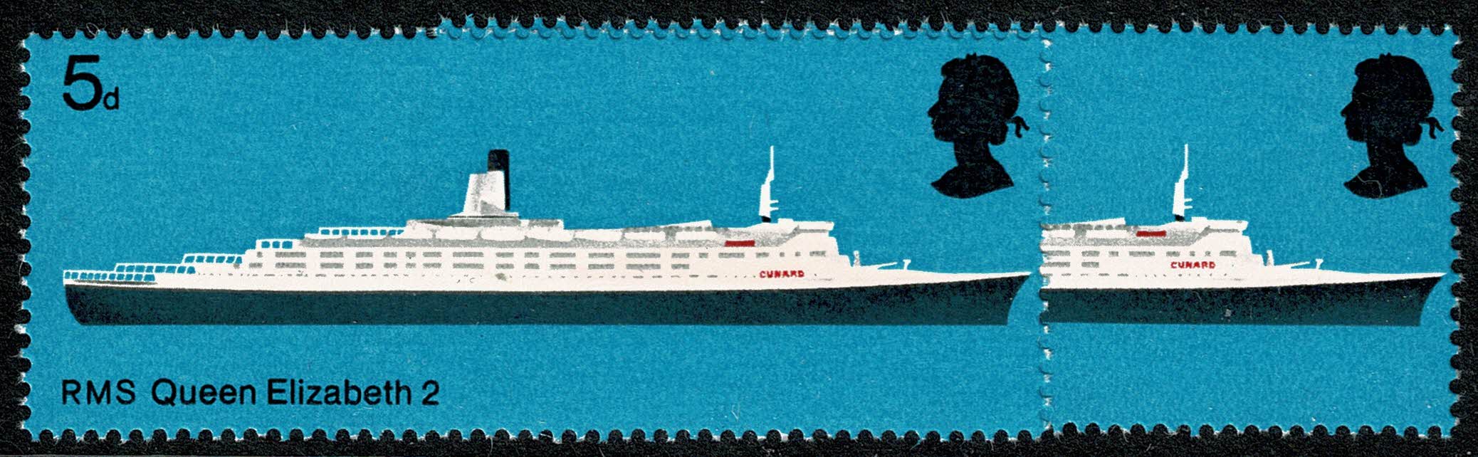 1969 Ships 5d with SHIFT OF RED DOWNWARDS (Cunard logo). Unmounted mint single. Image close up alongside normal at right. As illustrated. Supplied with normal.
