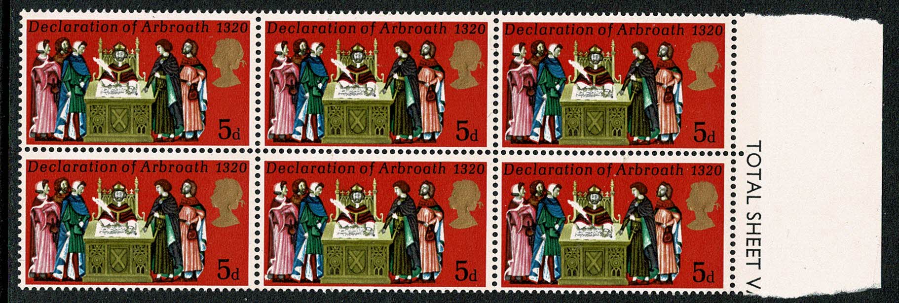 Unmounted mint positional block of six with "white spot in hem" R 5/5