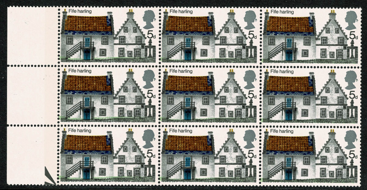 1970 Cottages 5d. GREEN SHIFT. SG 815 var