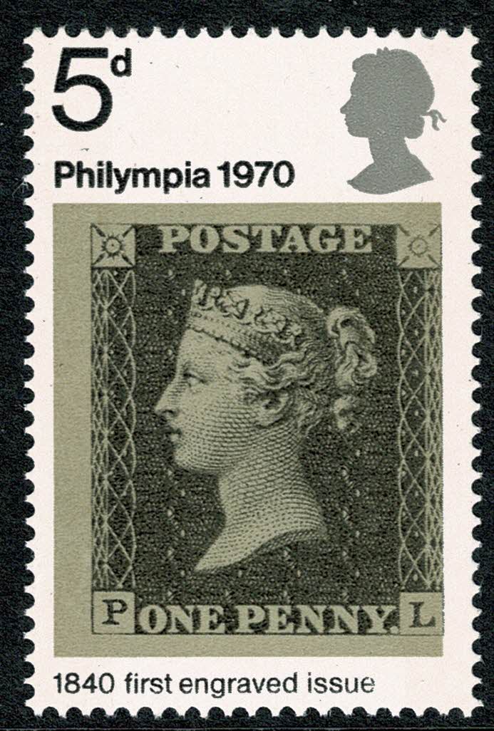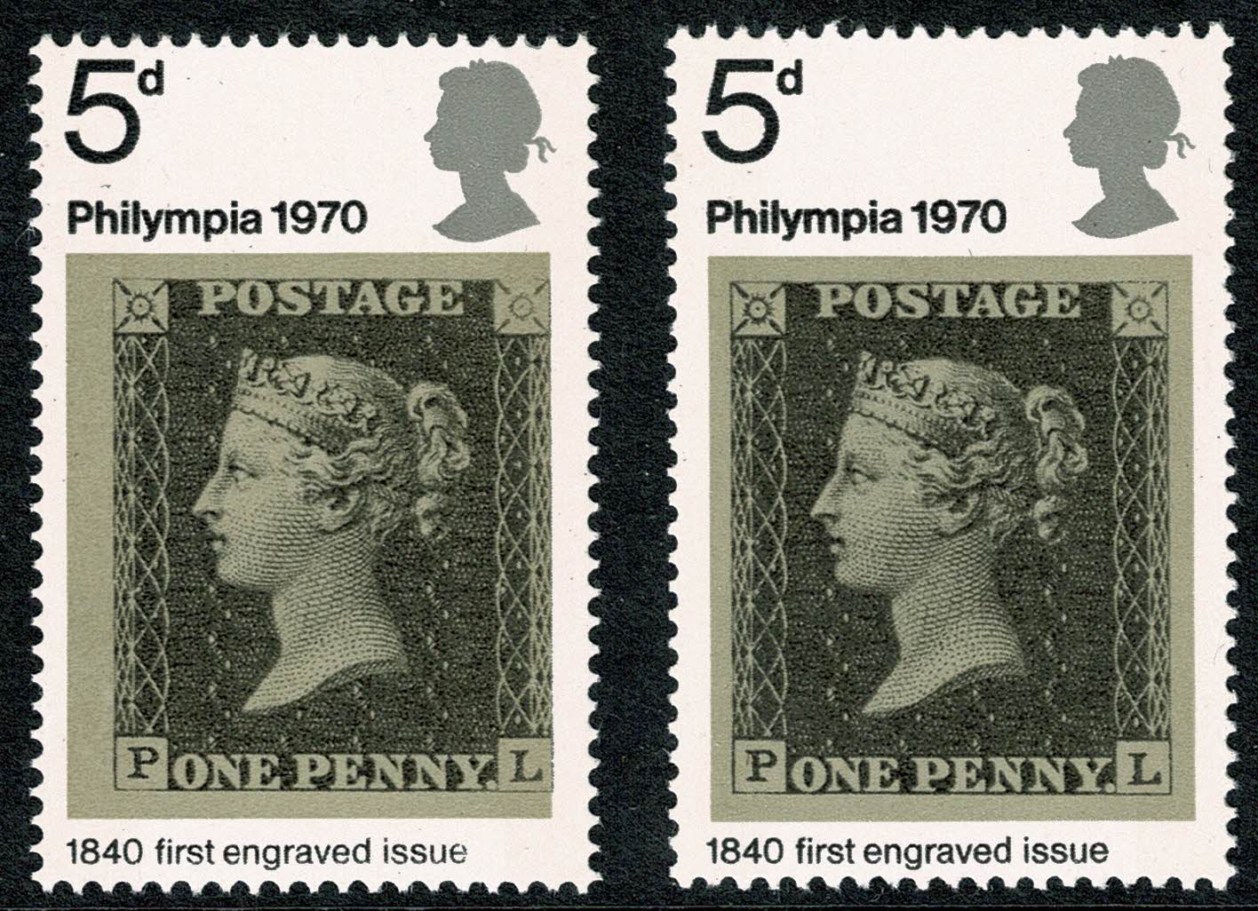 1970 Philympia 5d. SHIFT OF GREY BLACK to right. SG 835 var