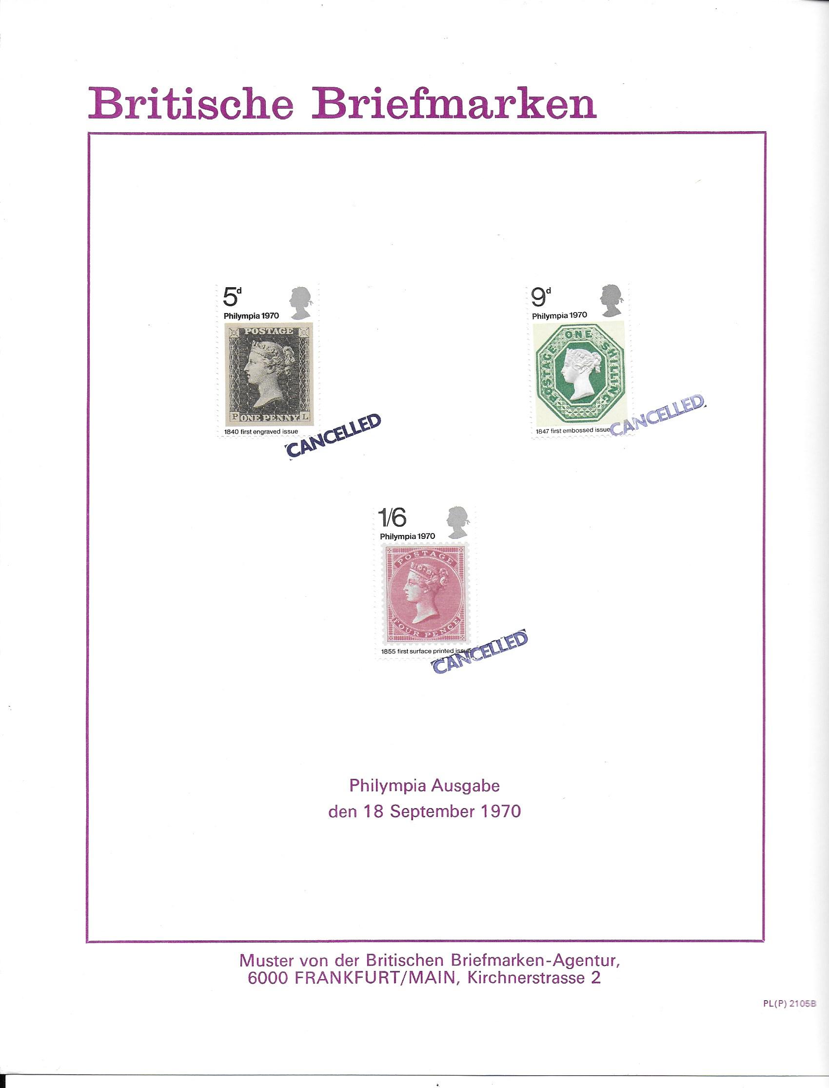 1970 Philympia. Set on GPO German Publicity Card.