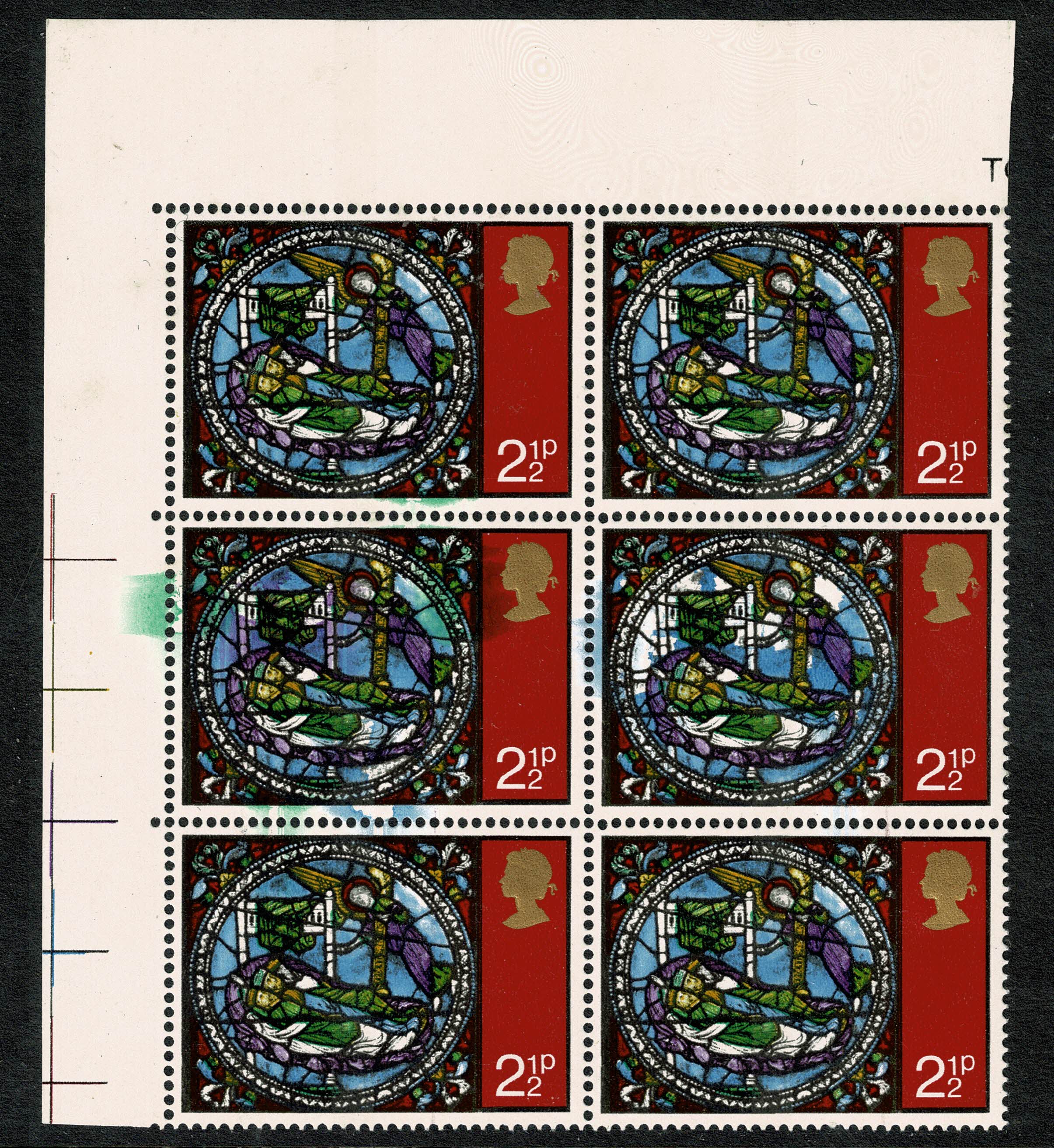 1971 Christmas 2½p. Multiple inking flaws positional block. SG 894 var