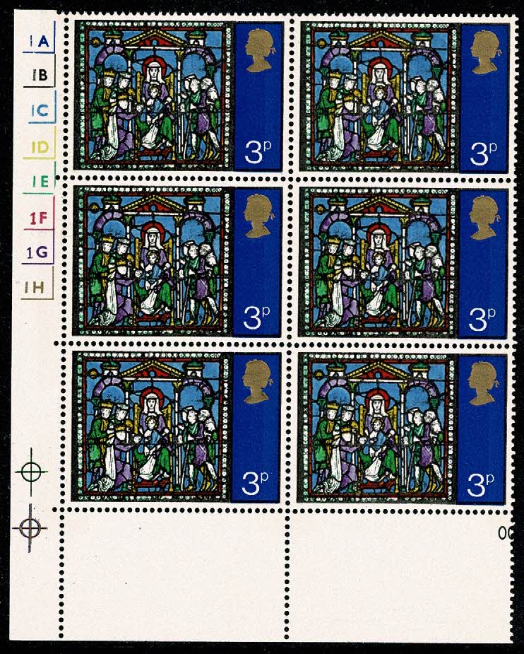 1971 Christmas 3p Cyl. 1A 1B 1C 1D 1E 1F 1G 1H. no dot cylinder block