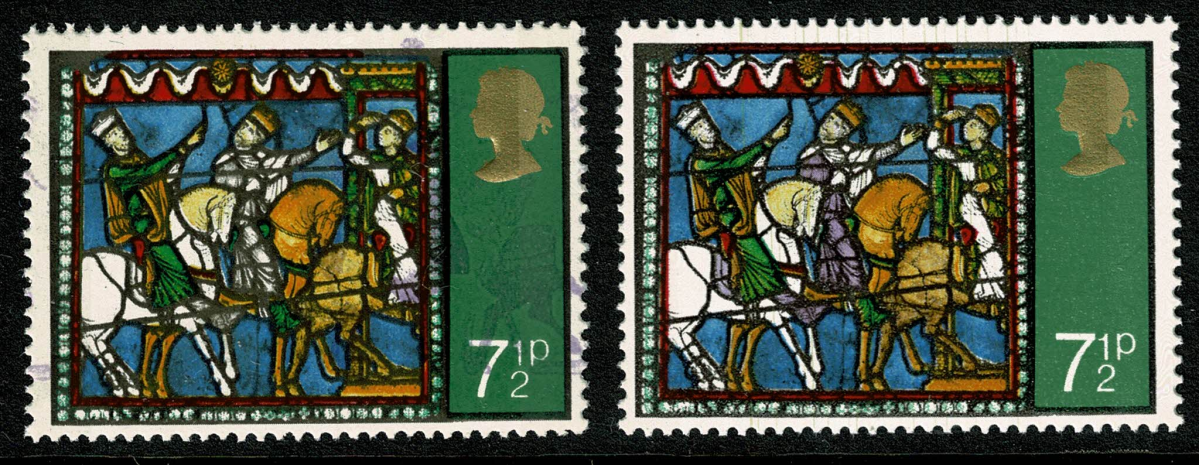 1971 Christmas 7½p. SHIFT OF LILAC. SG 896 var