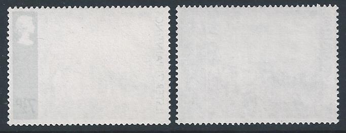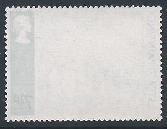 UM single with OFFSET variety of pale blue panel, Queen's head and value. Also feint offset of inscription on opposite side of stamp. Illustrated with normal right.