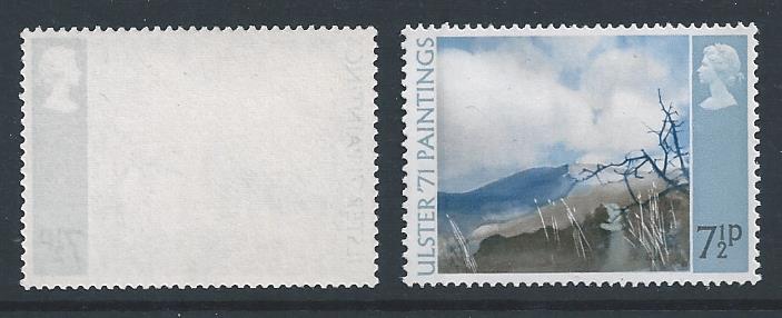 1971 "Ulster" Paintings 7½p value. OFFSET OF VALUE TABLET. SG 882 var