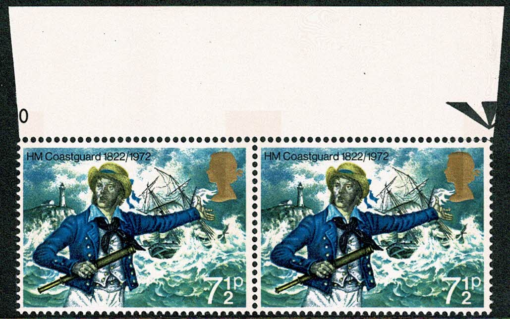 1972 Anniversaries 7½p. Listed constant variety "telescope flaw" SG Spec. W222c