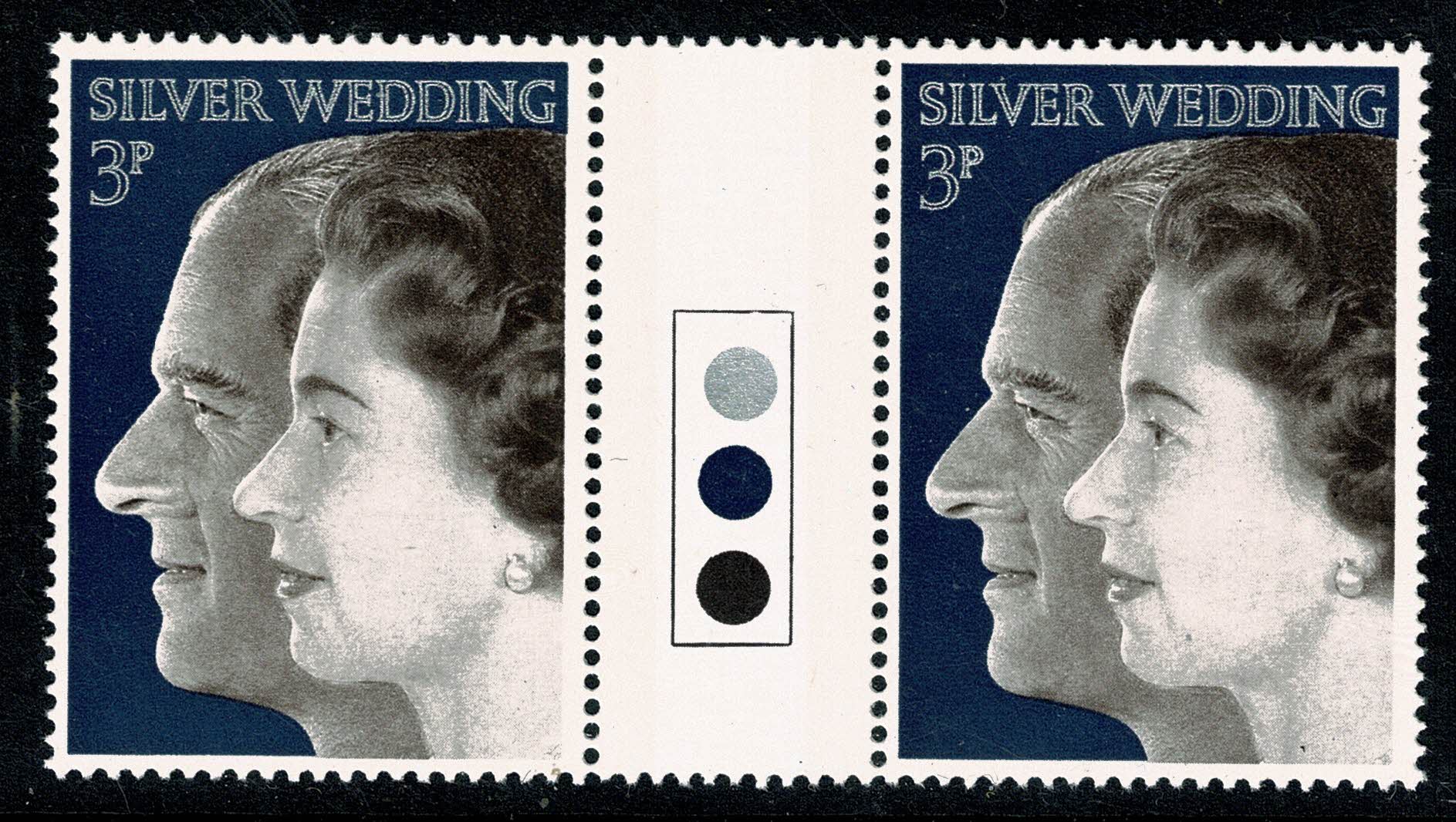 1972 Royal Silver Wedding 3p (Jumelle). Traffic Light gutter pair. SG 918