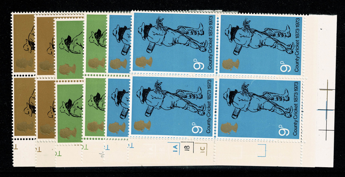 1973 Cricket. Three values in complete set of 6 cylinder blocks of four
